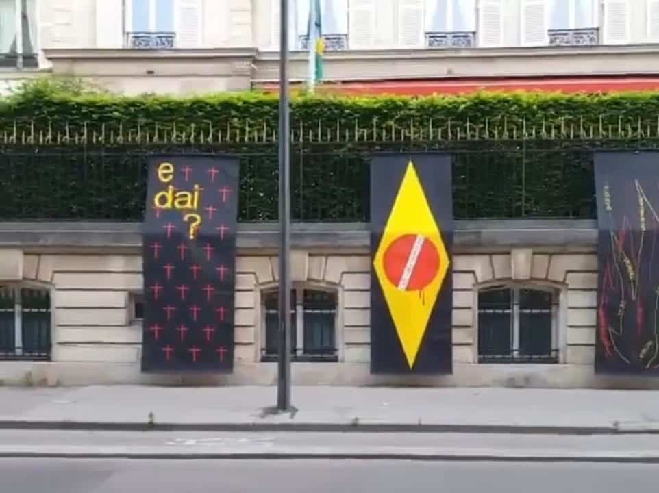 Embora a Embaixada do Brasil em Paris não tenha aberto as portas para a tradicional festa do 7 de setembro, manifestantes contra o governo Bolsonaro decidiram protestar em frente ao local. Segundo notícia da rfi, nesta segunda-feira, 7, membros de vários coletivos contra o governo Bolsonaro, realizaram protesto em frente à sede da Embaixada.