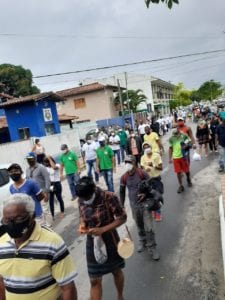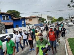 Os trabalhadores do Pré-assentamento Projeto Mangabeiras tomaram hoje (28/07) às ruas de Porto Seguro, no Extremo Sul da Bahia, em uma manifestação contra a ação de despejo emitida pelo judiciário. As 200 famílias estavam ameaçadas de serem jogadas nas ruas da cidade em um dos piores momentos da pandemia de coronavírus por uma ordem judicial de despejo.