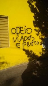Três pichações com símbolos de suásticas e a frase “odeio viados e pretos” apareceram na fachada do prédio ao amanhecer. A Associação está localizada no bairro Campina, cidade de São Leopoldo (RS), região da Grande Porto Alegre. Sara esclareceu que trata-se de uma ação intimidatória e registrou um boletim de ocorrência virtual.