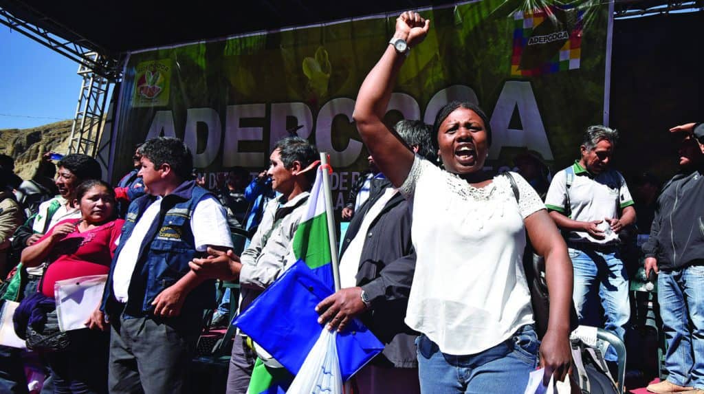 Agora, com o governo ditatorial e semifascista que surgiu com o golpe que derrubou Morales após a direita fraudar as eleições, os golpistas prendem uma sindicalista do Movimento ao Socialismo (MAS) para, ao que tudo indica, entregar a entidade cocaleira aos seus subordinados.