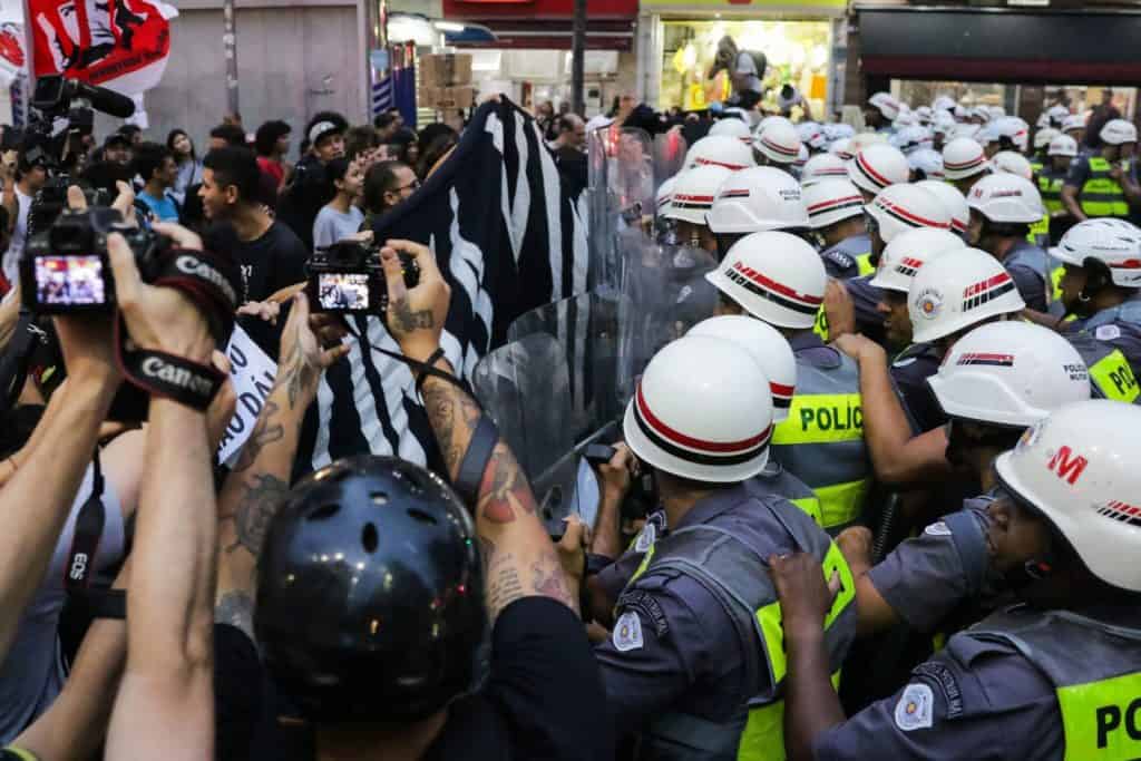 A passeata correu bem até a chegada na Avenida Ipiranga, a três quarteirões da Praça da República, quando novamente a PM decidiu impedir o ato de continuar pela avenida. Foi nesse momento que a polícia partiu para cima de alguns manifestantes com cassetetes, spray de pimenta e bombas, 10 pessoas foram detidas. Para se ter uma ideia da ação desproporcional da polícia, uma linha da tropa de choque foi deslocada para trás dos manifestantes, avançando sobre o ato e encurralando as pessoas.