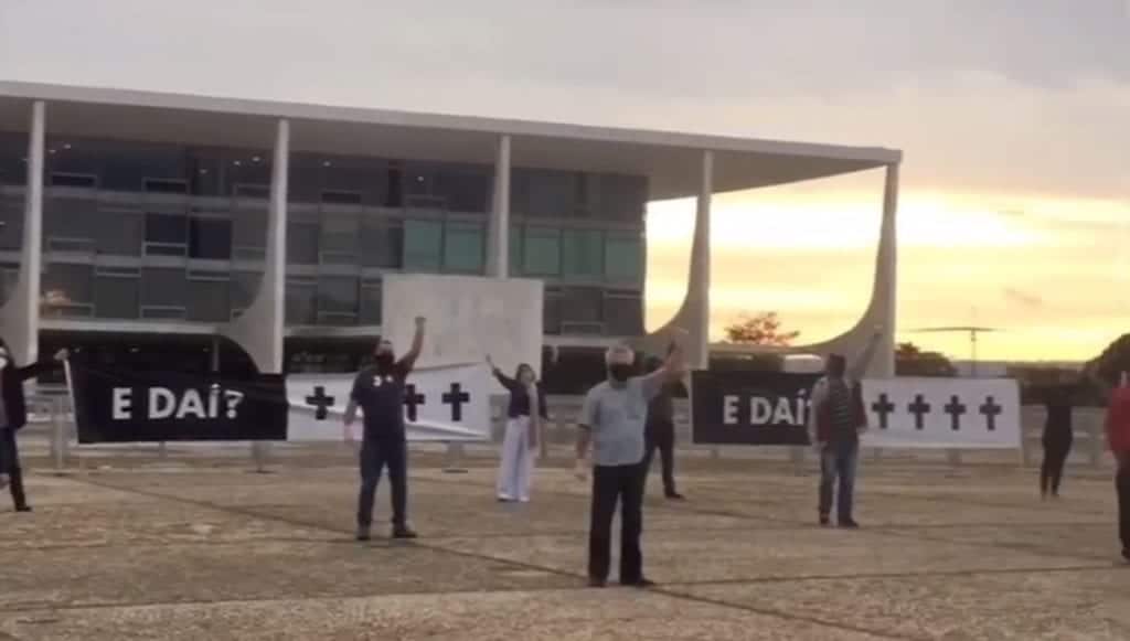 A manifestação foi gravada e o vídeo, que termina com a legenda, “8.590 vidas acabaram! Mais quantas amanhã? ‘E daí?’”, foi divulgado na Internet.