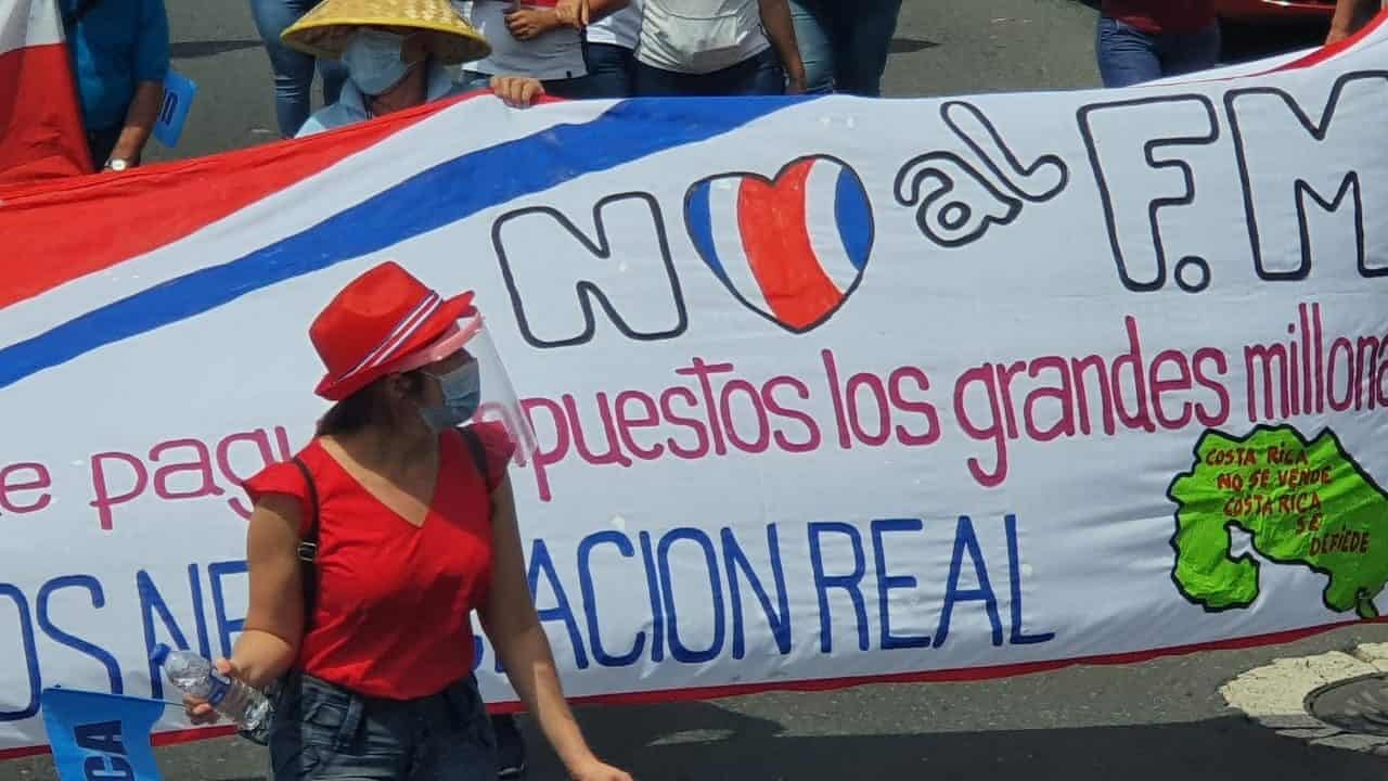 Em diferentes partes do país, os manifestantes realizam manifestações, caravanas de veículos e marchas, que nesta capital acontecem desde a estátua de León Cortés até a nova sede da Assembleia Legislativa, para expressar a rejeição de trabalhadores e cidadãos às propostas legais de Emprego Público e a eliminação da jornada de oito horas, e contra o FMI.