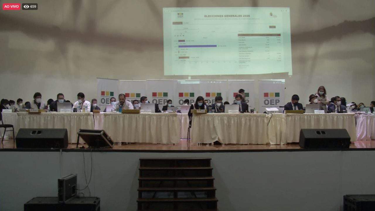 O Corpo Eleitoral Plurinacional da Bolívia retomou a recontagem de votos, no começo da tarde desta segunda (19), e o informe das 15h14, horário de La Paz, a apuração de 26,91% das urnas dá 39,85% dos votos válidos para Carlos Mesa e 38,95% para Luis Arce.