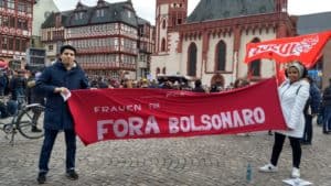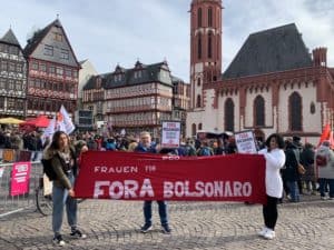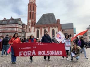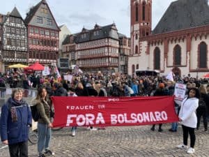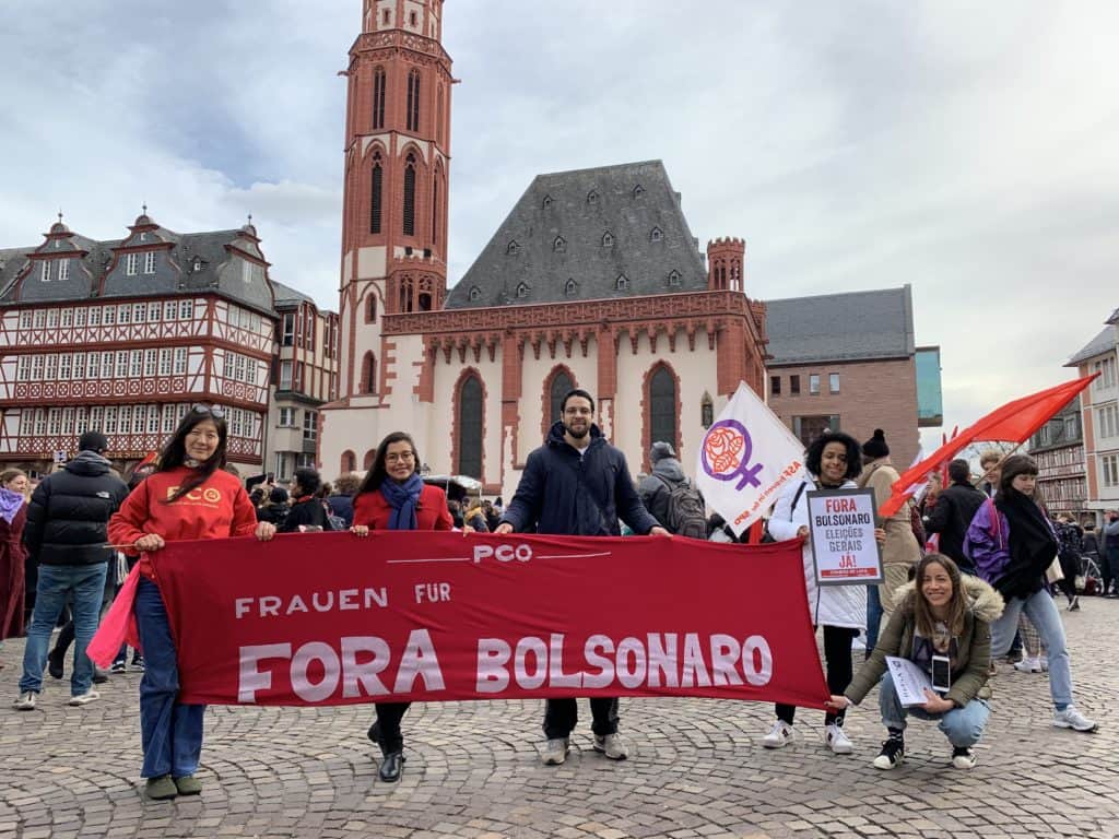 Já em Frankfurt, os militantes do PCO levaram uma grande bandeira em que era possível ler “Frauen für Fora Bolsonaro”, faixa essa que acabou sendo a sensação do evento, com inúmeras pessoas pedindo para tirar fotos. Também foram distribuídos materiais da campanha Fora Bolsonaro.