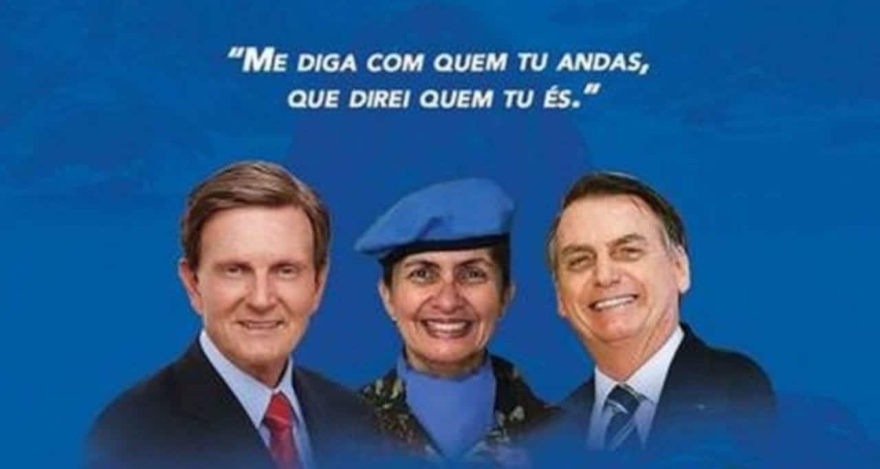 O “santinho digital” de Crivella causou um “mal-estar” tanto na ONU quanto nas forças armadas brasileiras. Andréa Firmo (Republicanos), sua candidata à vice-prefeita, aparece, na imagem, no centro, entre Crivella (à esquerda) e Bolsonaro (à direita), trajando uniforme camuflado, além da boina e lenço azuis das forças militares da ONU.