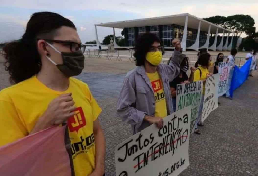 Na tarde desta terça-feira 13 de outubro, estudantes realizaram um protesto em frente ao Supremo Tribunal Federal (STF) contra as intervenções de Jair Bolsonaro nas instituições de ensino superior. O ato foi chamado pelo Diretório Central Estudantil (DCE) e centros acadêmicos da Universidade de Brasília (UnB) e a Federação Nacional dos Estudantes de Ensino Técnico (Fenet).