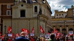 O Partido Comunista Italiano realizou nesta terça (02) manifestações em cerca de 20 cidades do país com reivindicação de “Democracia para os Trabalhadores”, em comemoração ao dia 02 de Junho, dia do referendo de 1946, primeiras eleições após o regime fascista, que decidiu pelo regime republicano em detrimento da monarquia, regime anterior ao período do governo fascista.