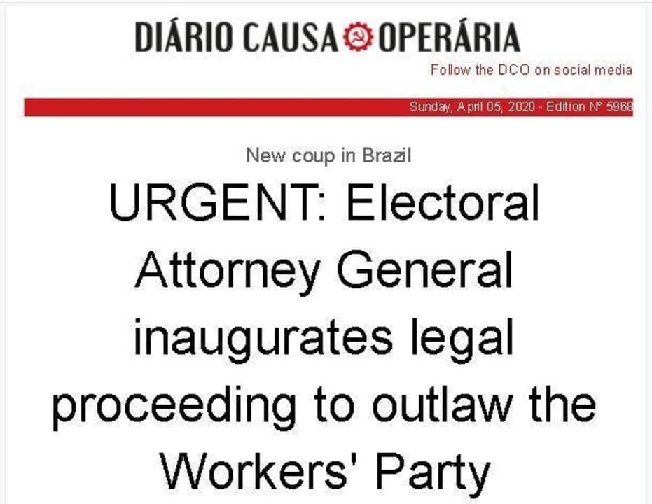O perfil do facebook da célula do PCO na Europa traduziu para o inglês, o francês e o espanhol a matéria na qual é denunciada a tentativa de fechamento do regime no Brasil extinguindo o PT. Trata-se da tentativa do Partido da Causa Operária de tentar mostrar ao mundo o que se passa no Brasil, contrapondo assim o que é falado nas organizações da imprensa burguesa.