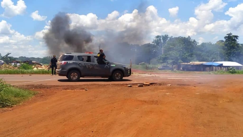 Após os pistoleiros atacar os indígenas e receberem uma resposta a altura que evitou uma violência maior, os latifundiários chamaram a polícia para atacar ainda mais os indígenas. Policiais militares do DOF (Departamento de Operações de Fronteira) e Força Tática chegaram e foram para cima dos indígenas para reprimir e expulsá-los da área, mas foram expulsos pelos indígenas que revidaram e fecharam a rodovia Perimetral Norte por várias horas para resistir aos ataques.