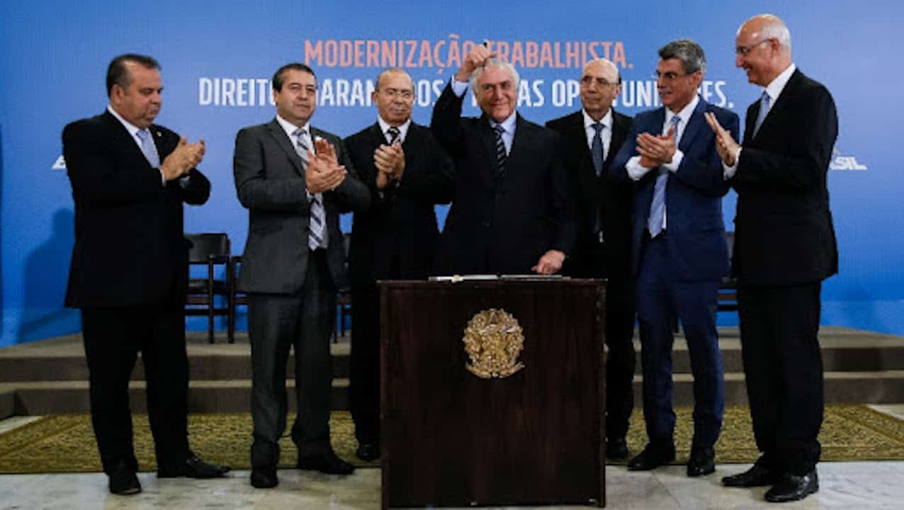 Várias dessas iniciativas foram aprovadas em 2017 com o título de “reforma trabalhista” (Lei 13.467/2017). A publicidade governamental anunciava uma nova era de mais empregos. Empresários anunciavam um novo mundo, na Câmara dos Deputados os mais ativos eram os parlamentares do PSDB, que inclusive conseguiram a relatoria da matéria. No Poder Judiciário, o ministro católico de extrema-direita, membro da organização proto-facista Opus Dei, Ives Gandra Martins Filho, presidente do Tribunal Superior do Trabalho, argumentava que a lei modernizaria as relações trabalhistas e seria bem vista na Justiça do Trabalho, desmentindo procuradores, juízes e todas as Associações da área que levantavam questionamentos sobre todos os pontos em discussão. Venceu com folga a tese golpista, na Câmara e no Senado, inclusive com o apoio de parlamentares que até há pouco ainda conviviam no campo centro-esquerda.