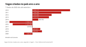 Ano após ano as vagas formais de emprego foram sendo liquidadas e, em parte substituídas pelo trabalho intermitente, uma das grandes novidades trazidas pela reforma trabalhista. Essa nova modalidade de emprego foi entusiasticamente aplaudida pelos empresários do comércio e de serviços. Mas ela acabou não sendo utilizada como se imaginava. Em grande parte por receio dos empresários quanto a questões trabalhistas que ainda estão pendente nos tribunais superiores. Desde 2017 foram criadas 185,5 vagas nessa modalidade. Muito menos que o anunciado à época do debate da lei no Congresso Nacional, quando o governo falava que iria criar 2 milhões de novos empregos em 3 anos.