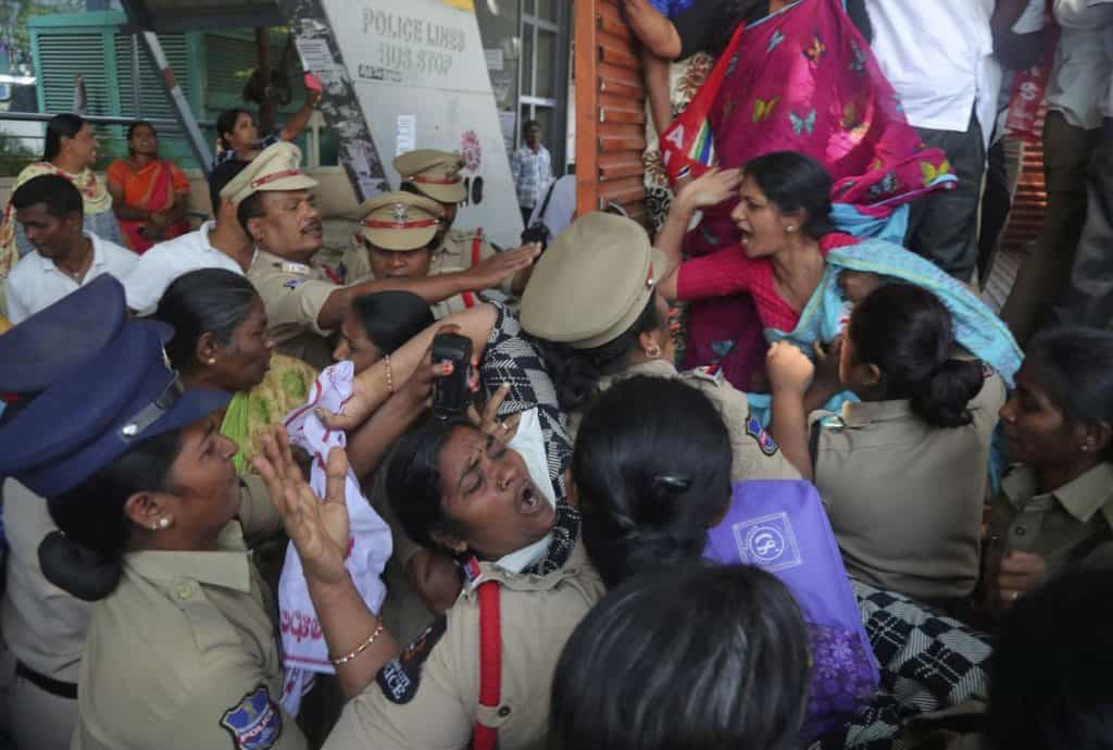 A polícia dispersou com canhões de água a estudantes da Universidade Jawaharlal Nehru e membros da Associação de Antigos Alunos da Universidade Jamia Millia Islamia que exigiam reunir com o ministro principal de Deli, Arvind Kejriwal, para apresentar uma carta de demandas pela violência na capital.