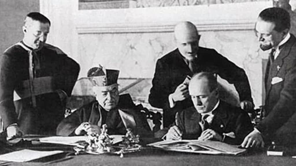 O governo fascista de Benito Mussolini e o Papa Pio XI assinaram, em 11 de fevereiro de 1929, o Tratado de Latrão ou “Tratado Roma-Santa Sé”. Esse tratado pôs fim à chamada “Questão Romana” e sacramentou o apoio da Igreja ao regime de extrema-direita fascista na Itália.