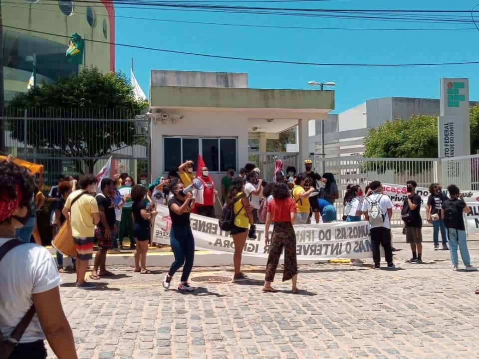 Professores e estudantes do IFRN protestam contra o interventor bolsonarista. Foto: reprodução