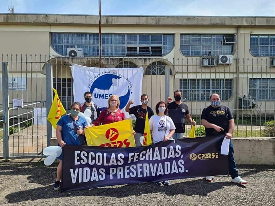 “As nossas escolas têm problemas estruturais graves, falta de professores, falta de funcionários, e apesar da sobrecarga das aulas remotas, não queremos nos expor sem segurança ao vírus. Não queremos ser cobaias desse experimento genocida que o governo está conduzindo”, declarou o diretor do Centro de Professores do Rio Grande do Sul (CPERS), Daniel Damiani.