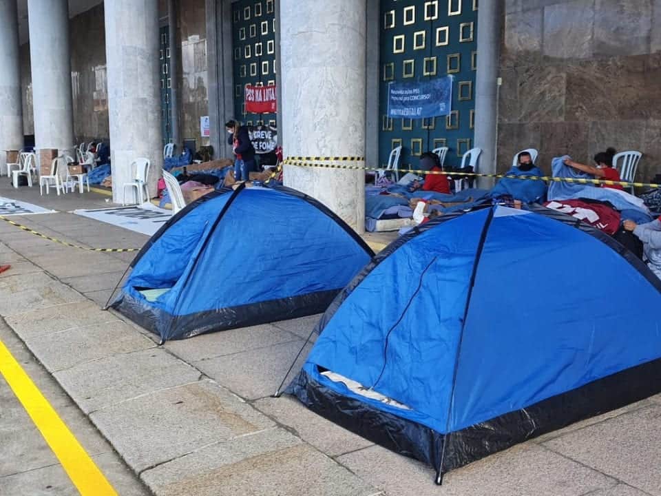 Profissionais da educação do Paraná realizaram acampamento e greve de fome contra o PSS. Foto: reprodução