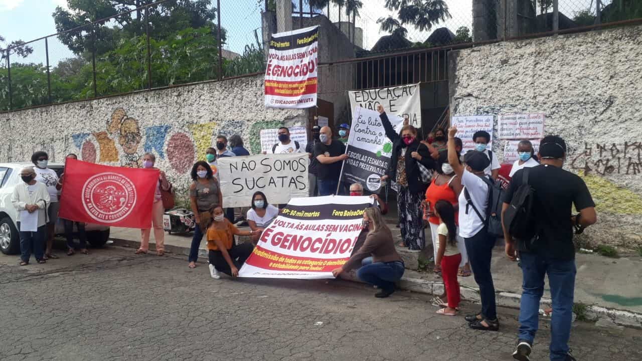 “Semana passada foi a de maior mortes na cidade de São Paulo. Como podemos encaminhar as crianças para a escola? Elas podem se contaminar e levar o vírus para suas famílias. Precisamos de vacina para todo mundo e de testagem RT-PCR para identificar se a pessoa está contaminada. E essa pessoa tem de ter direito ao auxílio decente com auxílio emergencial”, denunciou a professora.