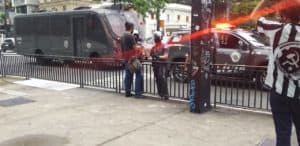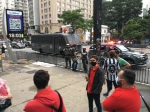 Na cidade de São Paulo também ocorreu uma demonstração da repressão militar, a polícia fascista de Doria apontou um lança granadas para os militantes do PCO que realizaram o ato, intimidaram um fotógrafo que estava na manifestação e chegaram até a ameaçar prender uma das militantes do partido e intimidando vários outros, demonstrando o caráter repressivo e reacionário da polícia paulista subserviente aos golpistas tucanos.