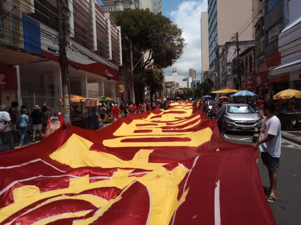 A faixa de 50 metros do @PCO29 por Fora Bolsonaro foi destaque também no ato de ontem (02) em Salvador. O Bloco Vermelho arrasou e se expandiu. pic.twitter.com/hQ2KqxSOTQ
