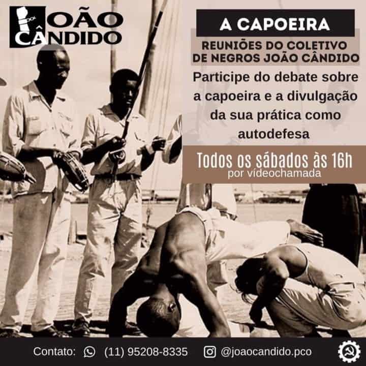 Em tempos de acirramento da luta de classe e dada a importância dessa luta, o objetivo do Coletivo de negros João Cândido do PCO, é, além de estimular a prática da capoeira, divulgar amplamente tudo relacionado à luta, sua história, os seus principais capoeiristas, entrevistar mestres, divulgar o seu legado e manter a luta pela existência dessa luta. Por isso, convidamos capoeiristas e todos aqueles que se interessam pela capoeira, para participarem do Coletivo e contribuir para essa campanha.