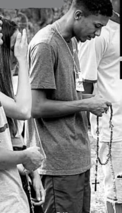 Foto de Jefferson rezando junto a um grupo de jovens de sua igreja – foto fornecida pela família