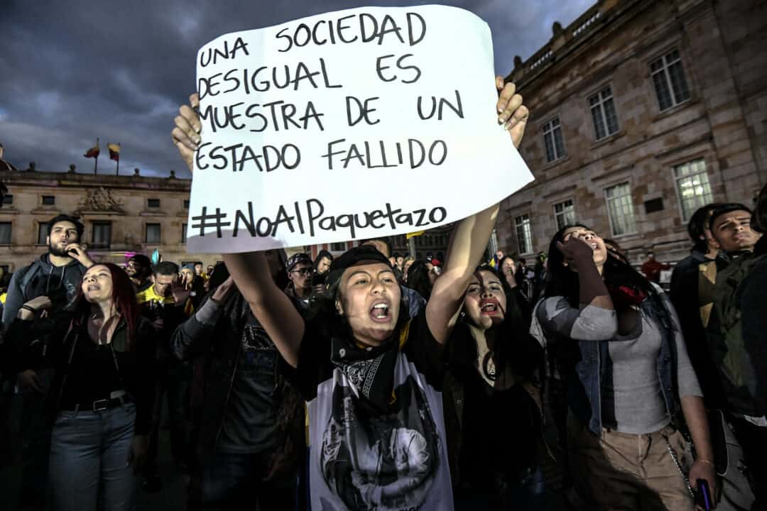 A proposta de reforma tributária enviada para o Congresso pelo governo fantoche de Duque em 15 de abril era apresentada como táboa de salvação para a crise agravada pela pandemia de covid-19, prometia atingir os mais ricos, mas também previa taxar as aposentadorias. O povo contudo, via na reforma mais um instrumento para esfolar a classe trabalhadora e parasitar o Estado para garantir os lucros do grande capital em crise. Pesquisas realizadas por órgãos da própria burguesia mostraram que 80% da população rejeitava a proposta.