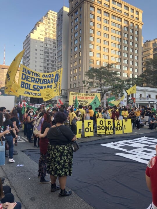 Na capital paulista, dezenas de milhares foram às ruas pedindo a derrubada de Jair Bolsonaro. Estavam presentes todos os partidos da esquerda, além de centrais sindicais como a CUT.