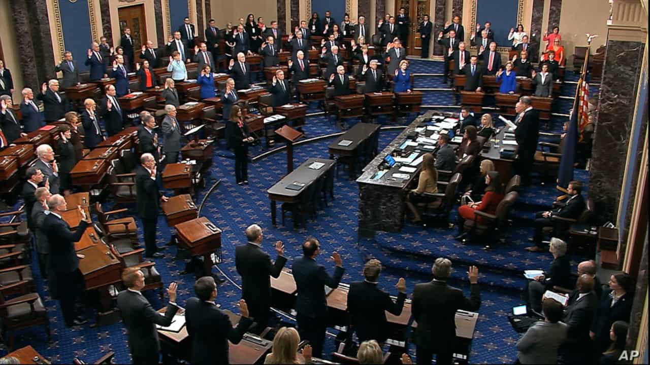 A maioria dos senadores decidiu que é constitucional o julgamento de Trump, já fora do cargo. No plenário foi exibido um vídeo com cenas da ocupação do Capitólio por apoiadores de Trump em 6 de janeiro, o que serve como uma justificativa para o julgamento.