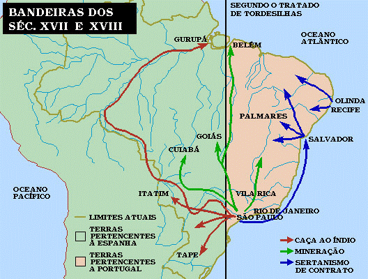 Regredindo alguns anos, em determinado momento da dominação espanhola sobre Portugal, a Espanha procura golpear a dominação portuguesa no Brasil. Com isso, expulsa os bandeirantes de várias regiões por serem contrários ao domínio espanhol.
