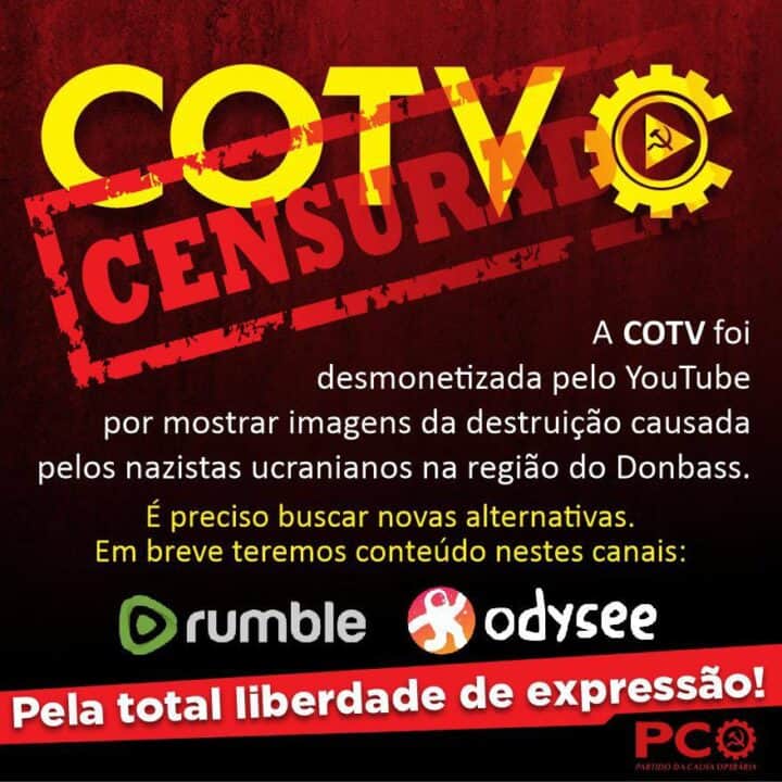 É preciso, neste sentido, apoiar e impulsionar a Causa Operária TV, um canal operário e independente, que procura apoiar a Rússia diante da opressão imperialista e que defende arduamente a liberdade de expressão em todas as suas formas. O cerco contra canais de esquerda e que estão contra as posições do imperialismo deve se fechar durante o próximo período eleitoral e isso deve ser combatido, para que se possa fazer uma campanha pela candidatura de Lula e pelos interesses da classe operária brasileira.