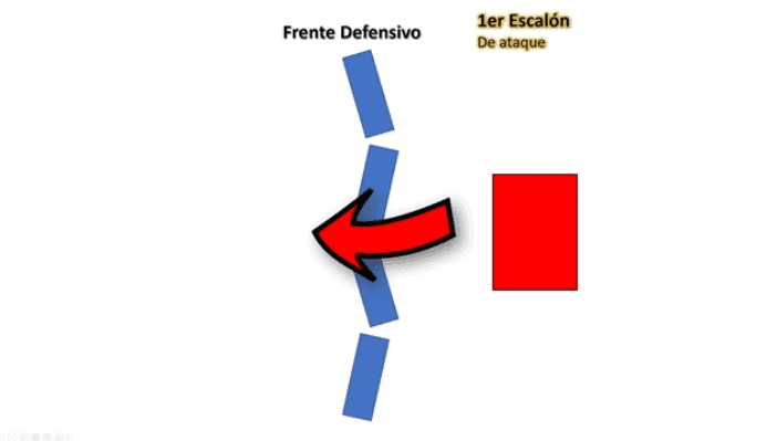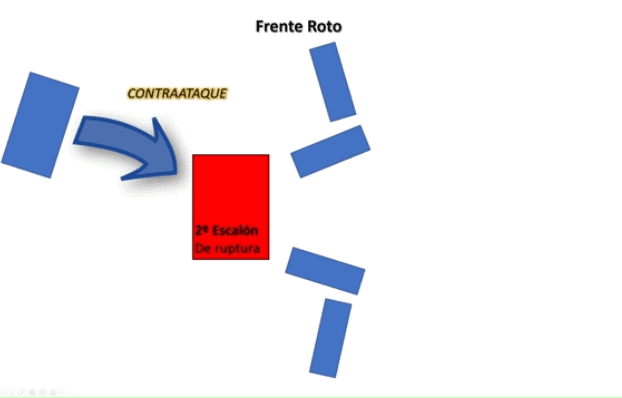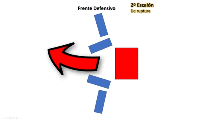 Ao detalhe da operação em um esquema simplificado: O primeiro escalão funciona como um escudo para que o segundo escalão faça a ruptura, conforme as figuras a seguir: