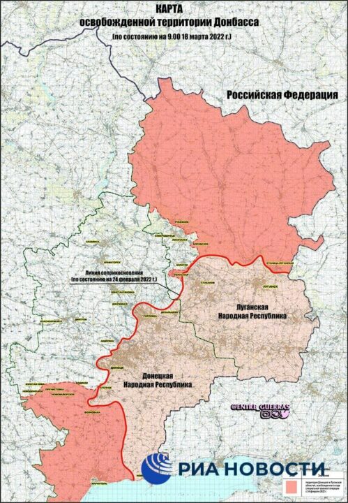 No mapa abaixo temos a situação cartográfica mais realista entre os canais do Telegram. Ele demonstra o “SUCESSO DA OPERAÇÃO ESPECIAL DA FEDERAÇÃO DA RUSSA, 17 DE MARÇO DE 2022, de acordo com dados de fontes abertas”.