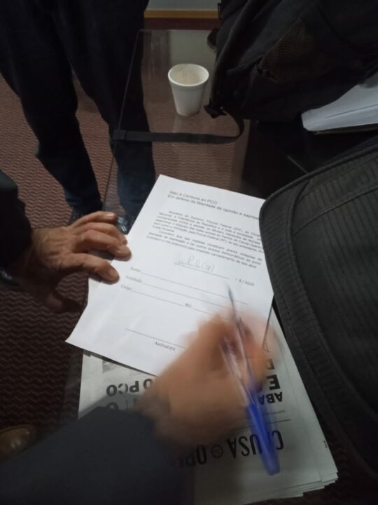 Durante o Congresso Nacional dos Bancários em São Paulo, na noite de hoje, 09, o companheiro João Vaccari Neto assinou uma nota de apoio ao Partido da Causa Operária na Luta contra o bloqueio do STF e a favor da liberdade de expressão irrestrita como consta na Constituição Federal Brasileira de 1988.