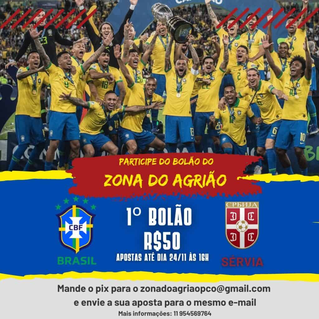Uma das tradições nacionais nas Copas do Mundo são os “bolões”, e o pessoal do Na Zona do Agrião não podia ficar de fora. O primeiro bolão vai prestigiar a estreia da Seleção na Copa do Catar. O desafio é acertar o placar do jogo entre Brasil e Sérvia, lembrando que a seleção do país dos Balcãs é a última herdeira do bom futebol iugoslavo.
