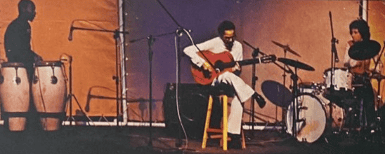 É impossível explicar o que se passou lá, naquele momento do passado em 1979, felizmente, por haver registro, ele pode ser alcançado até os dias de hoje e projeta-se no futuro. Apenas para fazer algumas comparações, Baden com seu violão foi além do célebre trio de violões formado por Paco de Lucia, John Mac Laughlin e Al Di Meola em 1981… dito de outro modo, pode parecer exagero meu, mas Baden faz sozinho coisas que sequer aquele trio, com três virtuosos do instrumento tocando juntos, foi capaz de fazer. Ademais, tocar bases harmônicas com a mão esquerda e solar, com a direita, algo trivial para tecladistas, assume outras proporções no violão, cuja técnica, em princípio, implicaria um violão fazendo base e outro solando, feito é costume entre os guitarristas de rock, exceto monstros semelhantes a Baden, tais quais Jimi Hendrix ou Tony Iommi – outro guitarrista sem alguns dedos da mão, semelhantemente a Django Reinhardt –.