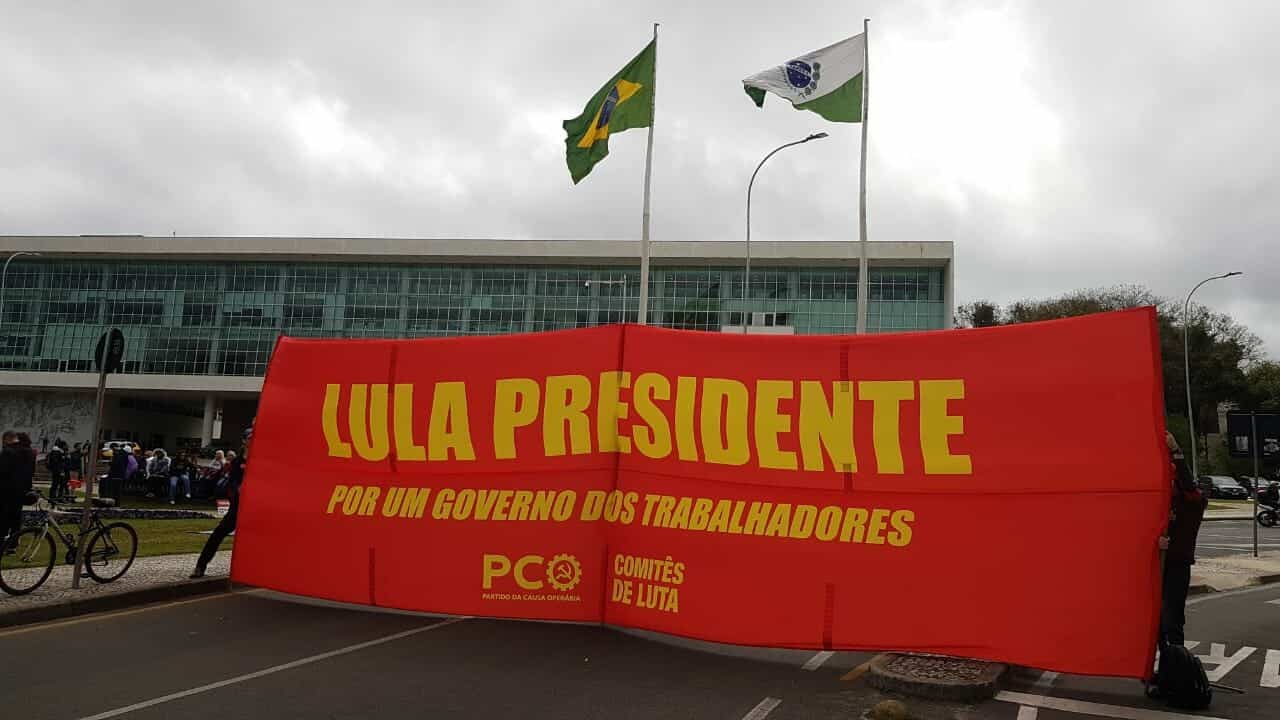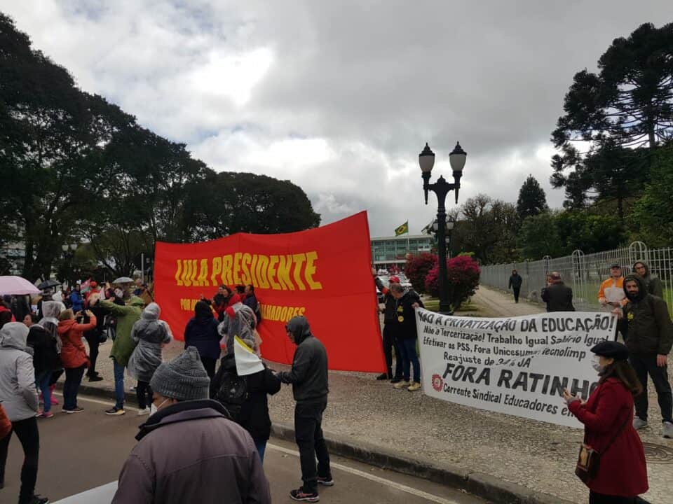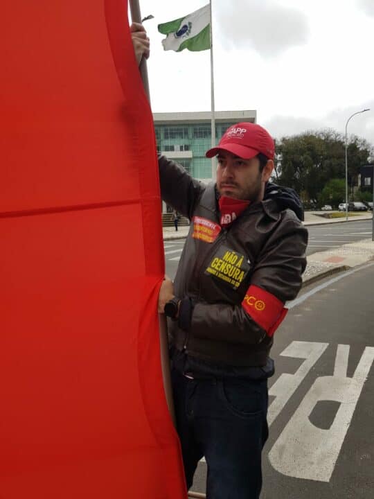 O candidato ao governo do Paraná pelo Partido da Causa Operária Adriano Teixeira, participou de uma atividade eleitoral hoje, 30, pela manhã no ato dos professores, em Curitiba.
