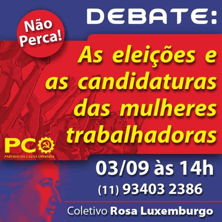 No próximo sábado, 03, o Coletivo de Mulheres Rosa Luxemburgo do Partido da Causa Operária promoverá um debate entre as candidatas no pleito para os diversos das próximas eleições.