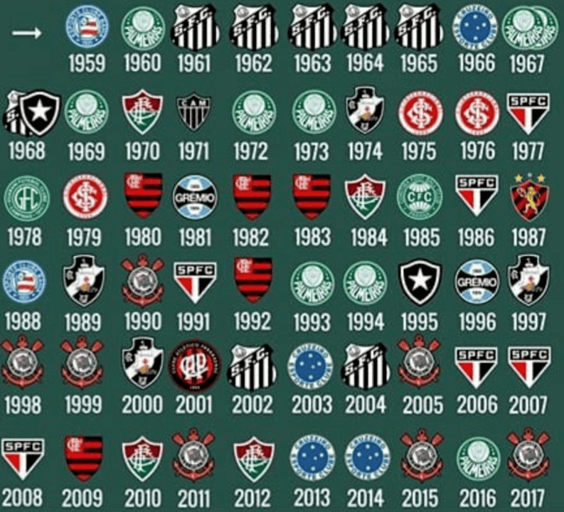 Palmeiras : 10 (1960, 1967, 1967, 1969, 1972, 1973, 1993, 1994, 2016 e 2018)