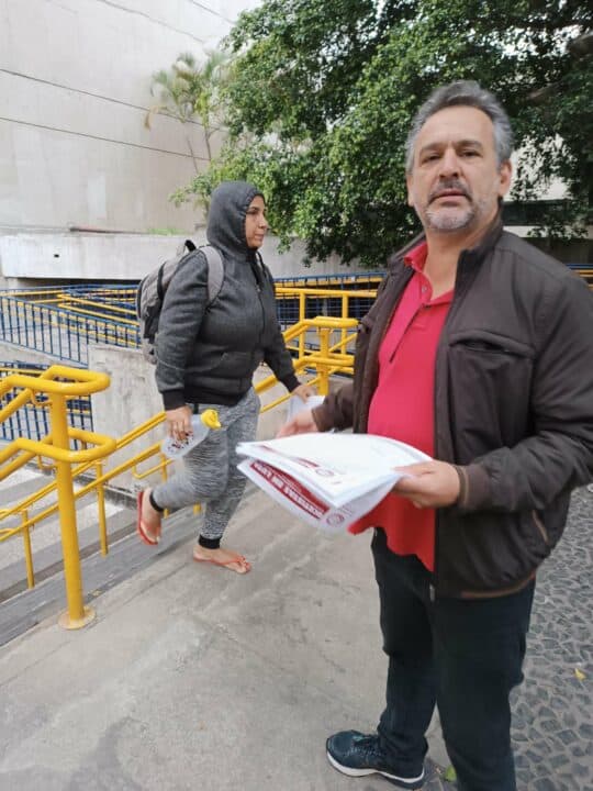 Com grande aceitação do trabalhadores, bem cedo o companheiro Edson e militantes do PCO distribuíram material e explicaram a proposta de governo no local