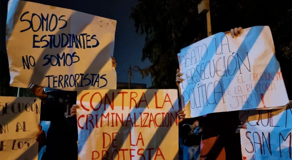 Cerca de 60 estudantes da Universidade San Marcos, a principal universidade peruana, ocuparam as instalações da instituição em apoio a manifestações no país, que pedem o fechamento do Congresso e novas eleições, além de expressar a rejeição popular contra a atual presidente, Dina Boluarte. Boluarte assumiu a chefia da nação andina após um golpe de Estado, apoiado pelas forças armadas e pelo imperialismo, ter derrubado o presidente Pedro Castillo.