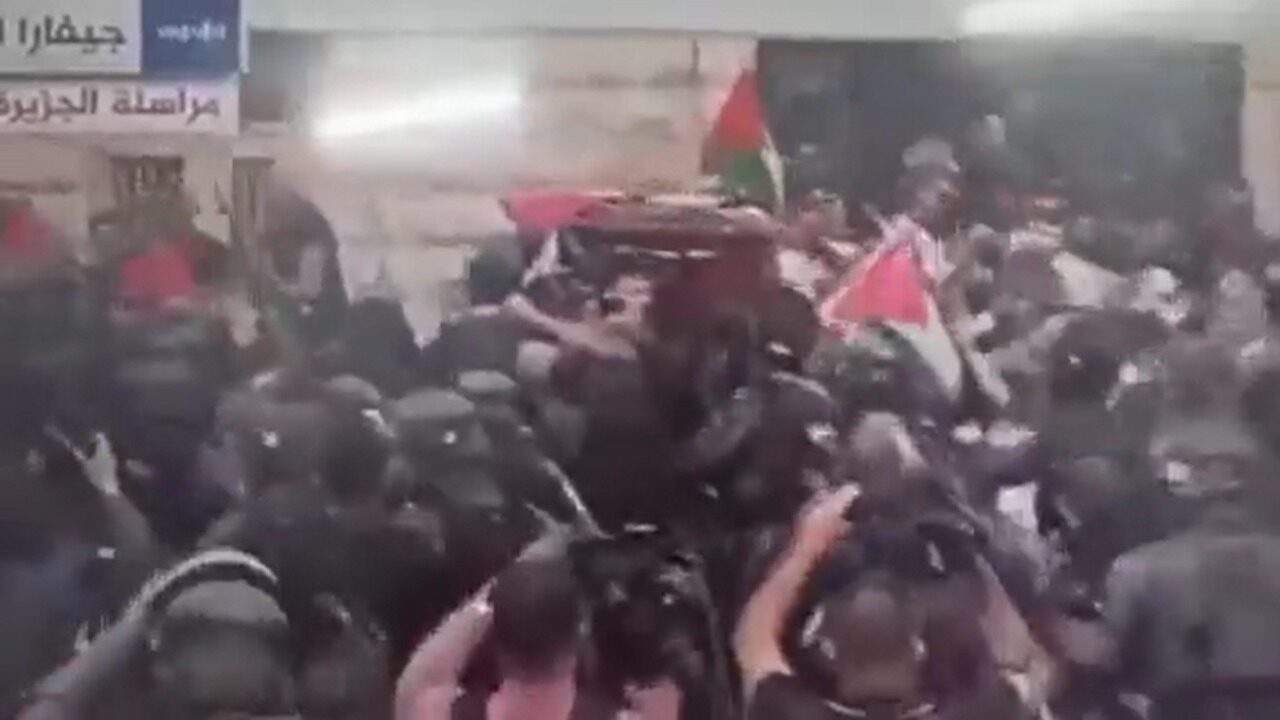 Com muita violência e truculência o exército de israelense, ferramenta de massacre execução do estado sionista e ilegal implantando artificialmente no oriente médio, expulsando o povo que ali estava há milênios, atacou o funeral da jornalista palestina Shereen Abu Aqleh em Jerusalém agora, 08:21 (BR).