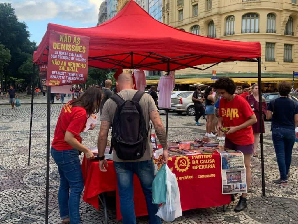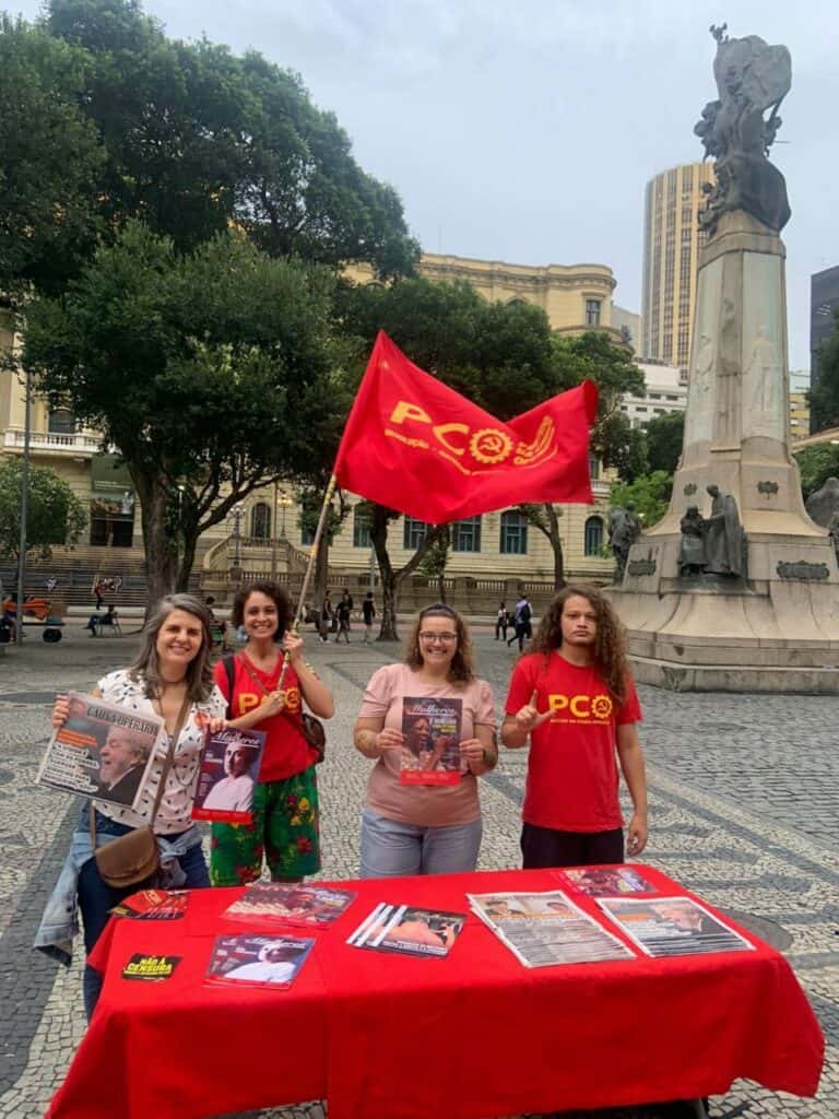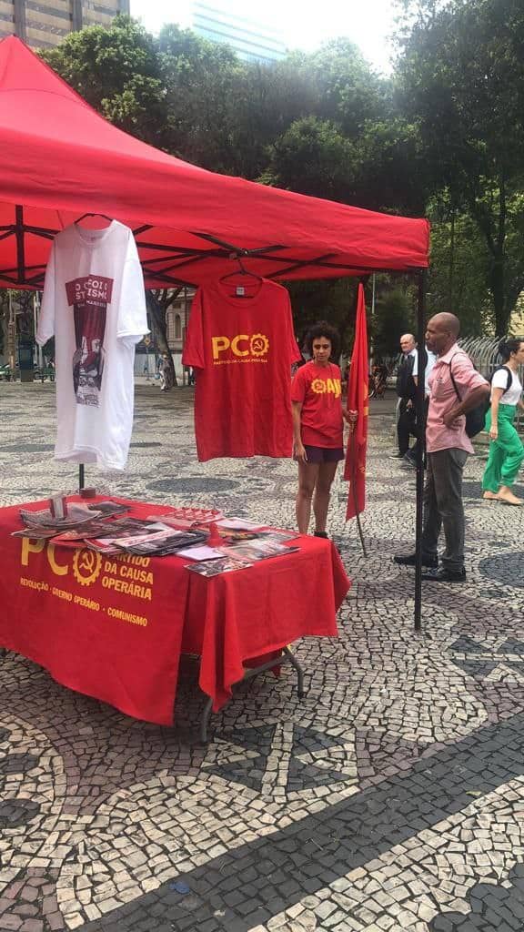 A banca funciona junto com a imprensa do coletivo, a revista Mulheres, mas também com o jornal Causa Operária, o Dossiê e materiais da Loja do PCO.