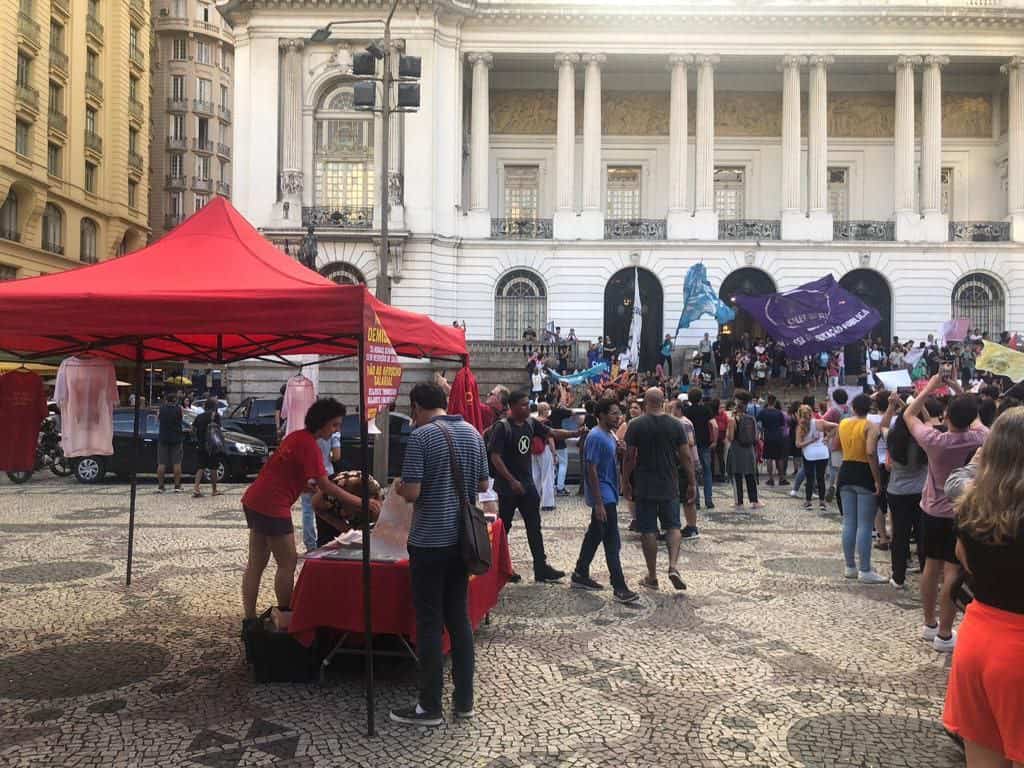 Ali em frente à Câmara Municipal é um ótimo lugar segundo as companheiras, porque várias pessoas dos sindicatos passam por ali, estudantes e outros trabalhadores, um fluxo de bastante gente. As mulheres do Coletivo Rosa Luxemburgo convidam todos a conhecerem a banquinha às quartas-feiras às 17 horas.