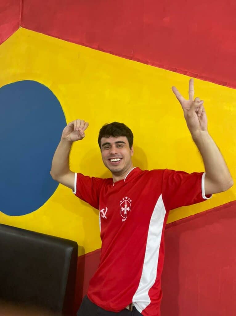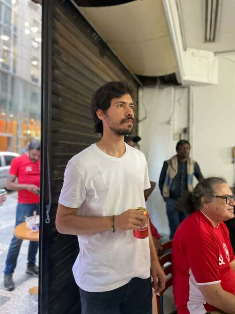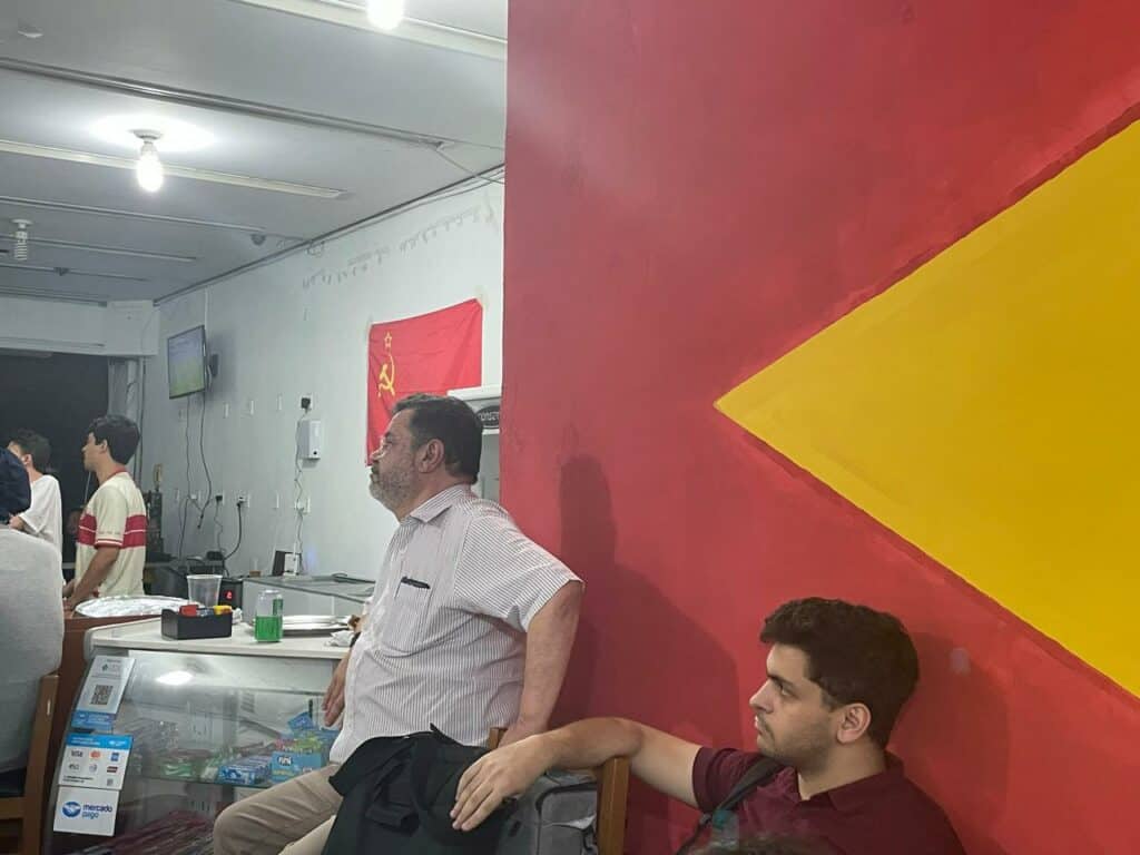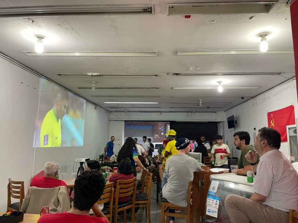 Para ver o Esquadrão do Hexa brilhar, os companheiros se reuniram no novo Centro Cultural Benjamin Péret, localizado bem no centro de São Paulo, próximo à estação Anhangabaú do Metrô. Cerca de 50 companheiros se reuniram ali para celebrar a vitória da Seleção.