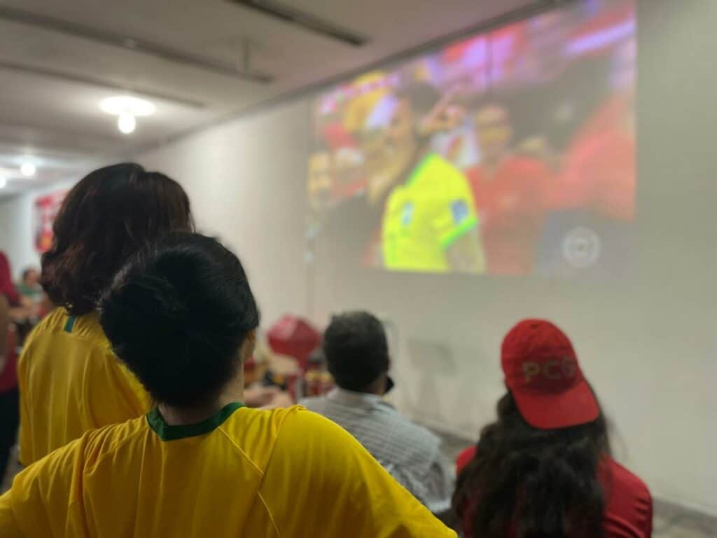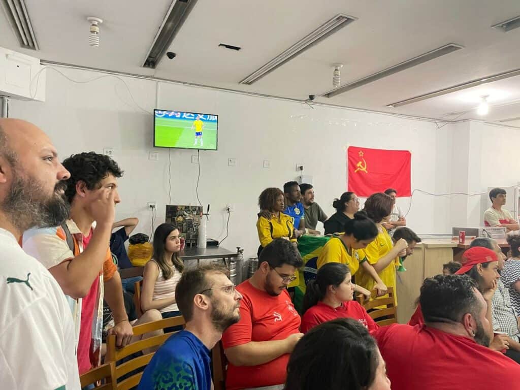 No entanto, apenas no CCBP é que se podia acompanhar o jogo com companheiros revolucionários e militantes de esquerda, que compreendem que um jogo da seleção brasileira não é um simples evento esportivo, mas é algo que mobiliza todo o país e levanta o moral da classe trabalhadora brasileira.