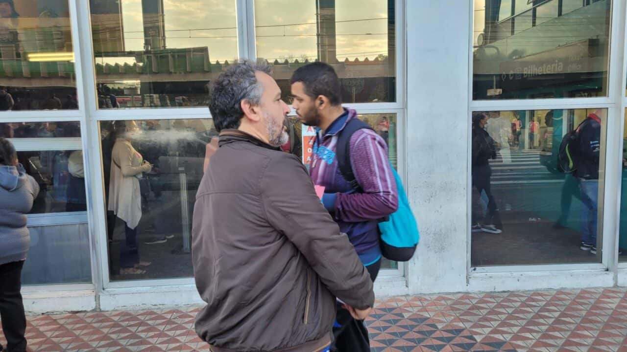Os trabalhadores recebem bem o material e o candidato ao governo de São Paulo pelo PCO, companheiro Edson Dorta “acorda” o pessoal com o bordão já conhecido na classe operária: “Quem bate cartão não vota em patrão!”