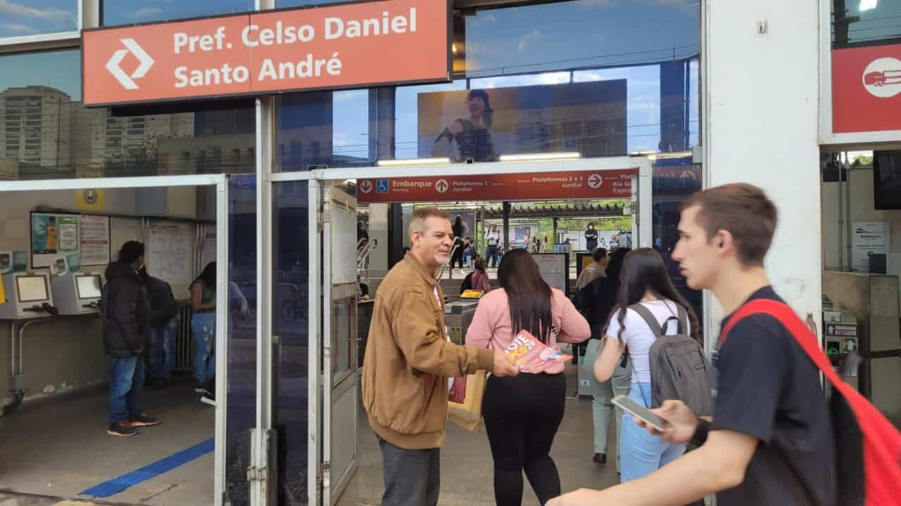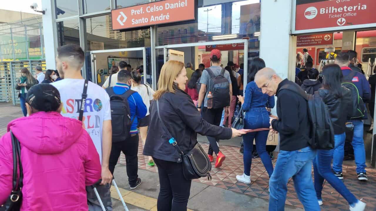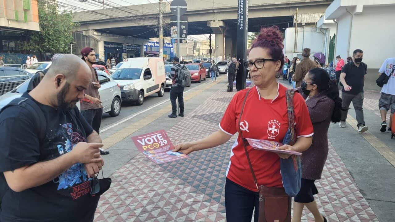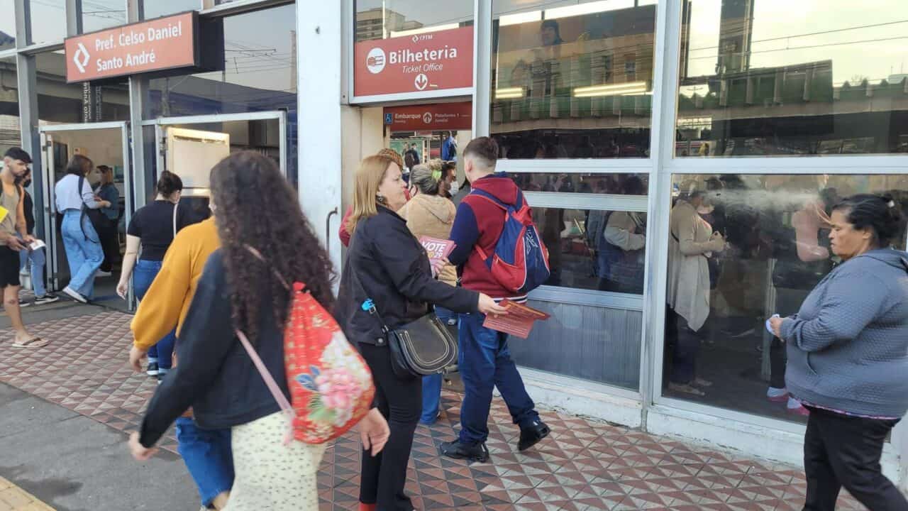 Candidatos do Partido da Causa Operária fizeram hoje, 09, atividade na estação de trem Celso Daniel em Santo André na grande São Paulo. Estavam presentes Edson Dorta, candidato ao governo de São Paulo, Lilian Miranda, vice-governadora, Lísia Sakai candidata a deputada federal, Simone Souza candidata a deputada estadual, todos pelo Partido da Causa Operária em São Paulo.