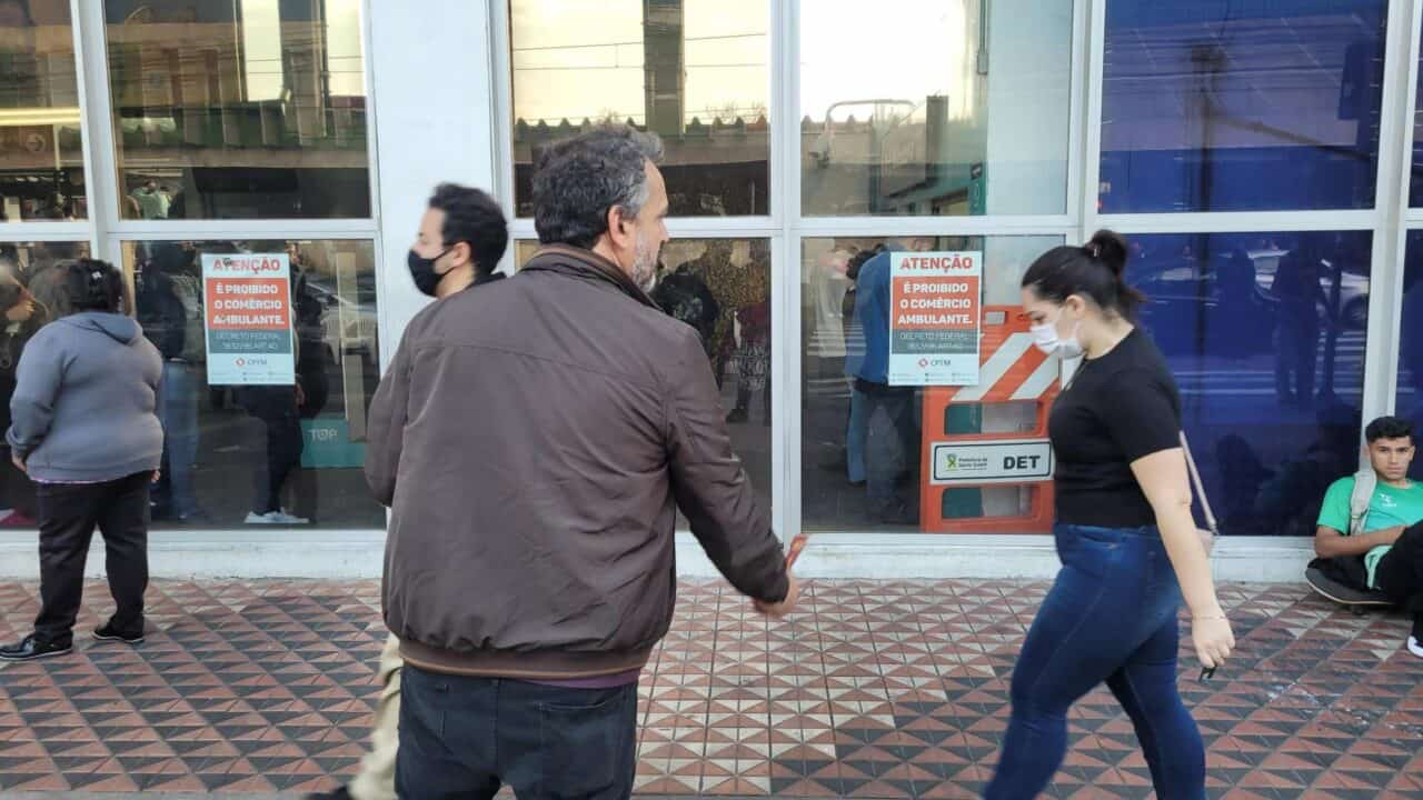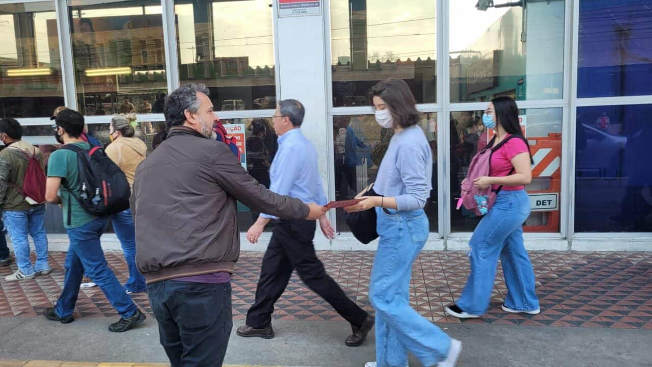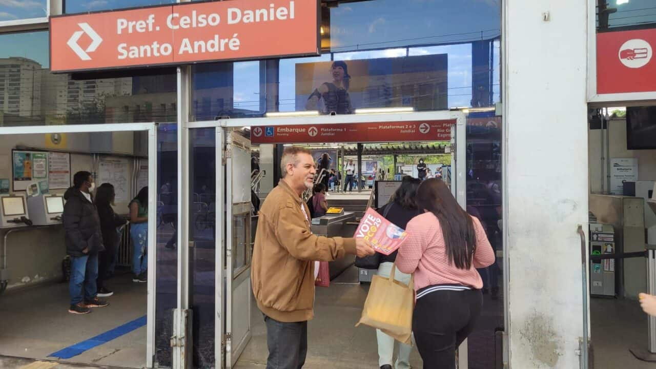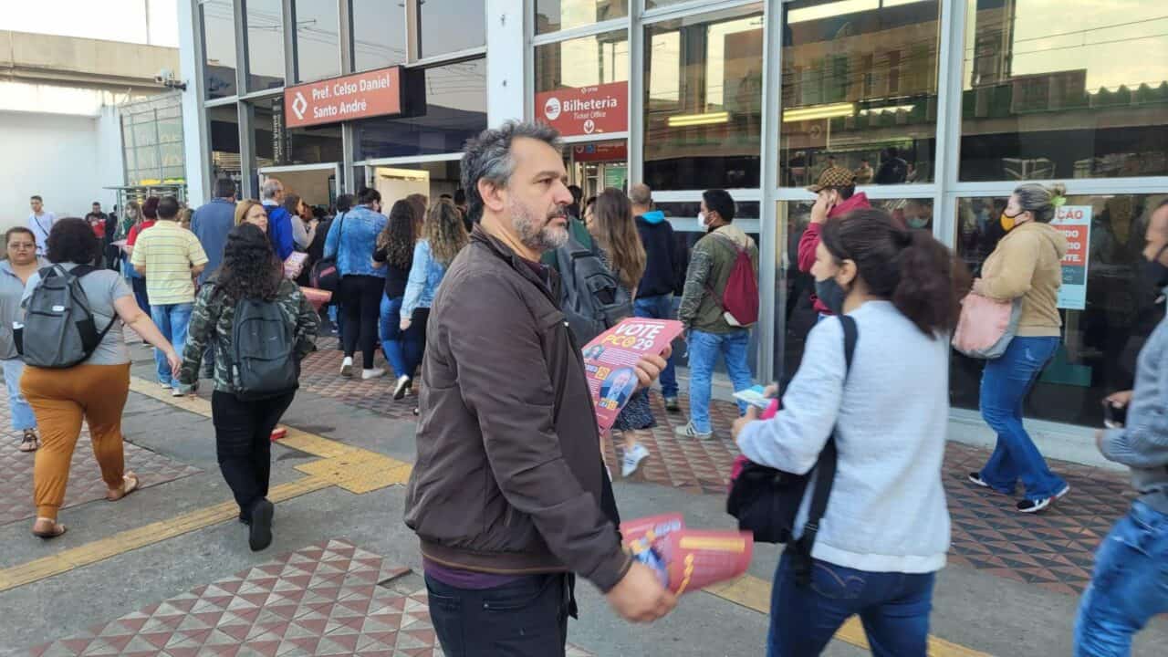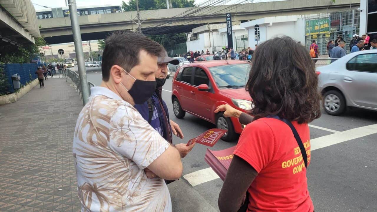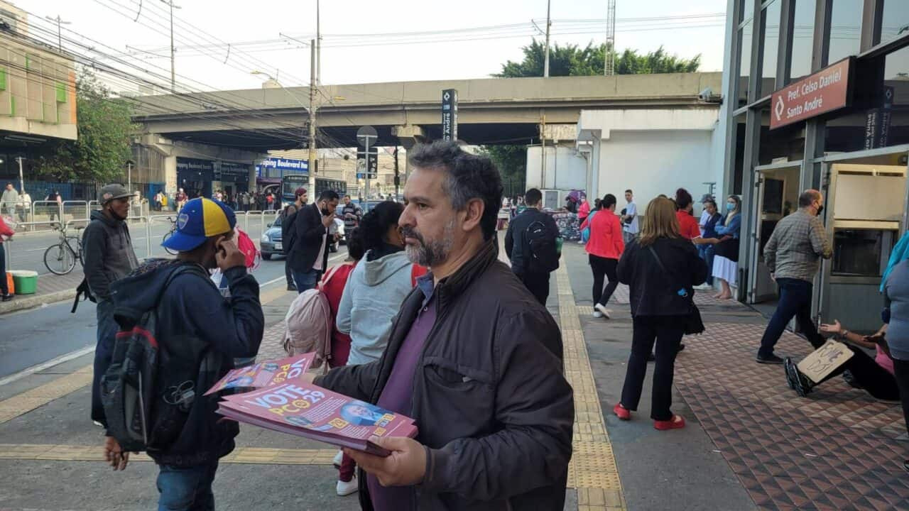 Militantes fazem panfletagem na Rua Oliveira Lima, em Santo André
