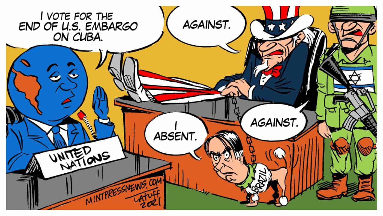 Os direitos democráticos do Povo Trabalhador, dos oprimidos pela falta de trabalho, dos reprimidos pelo trabalho indigno e de todos que lutam por uma humanidade justa que use os meios de produção existente para suprir as necessidades da sociedade humana e não apenas ao interesse da mais-valia devem ser a bandeira de luta dos Povos. Não aceitaremos a fome como moeda de troca em acordos comerciais entre os colonialistas. A luta deve ser pela libertação dos povos das garras do império e, Cuba é um grande exemplo dessa luta por liberdade de acessar ao comércio para ter direitos básicos atendidos e fornecidos aos seus cidadãos.